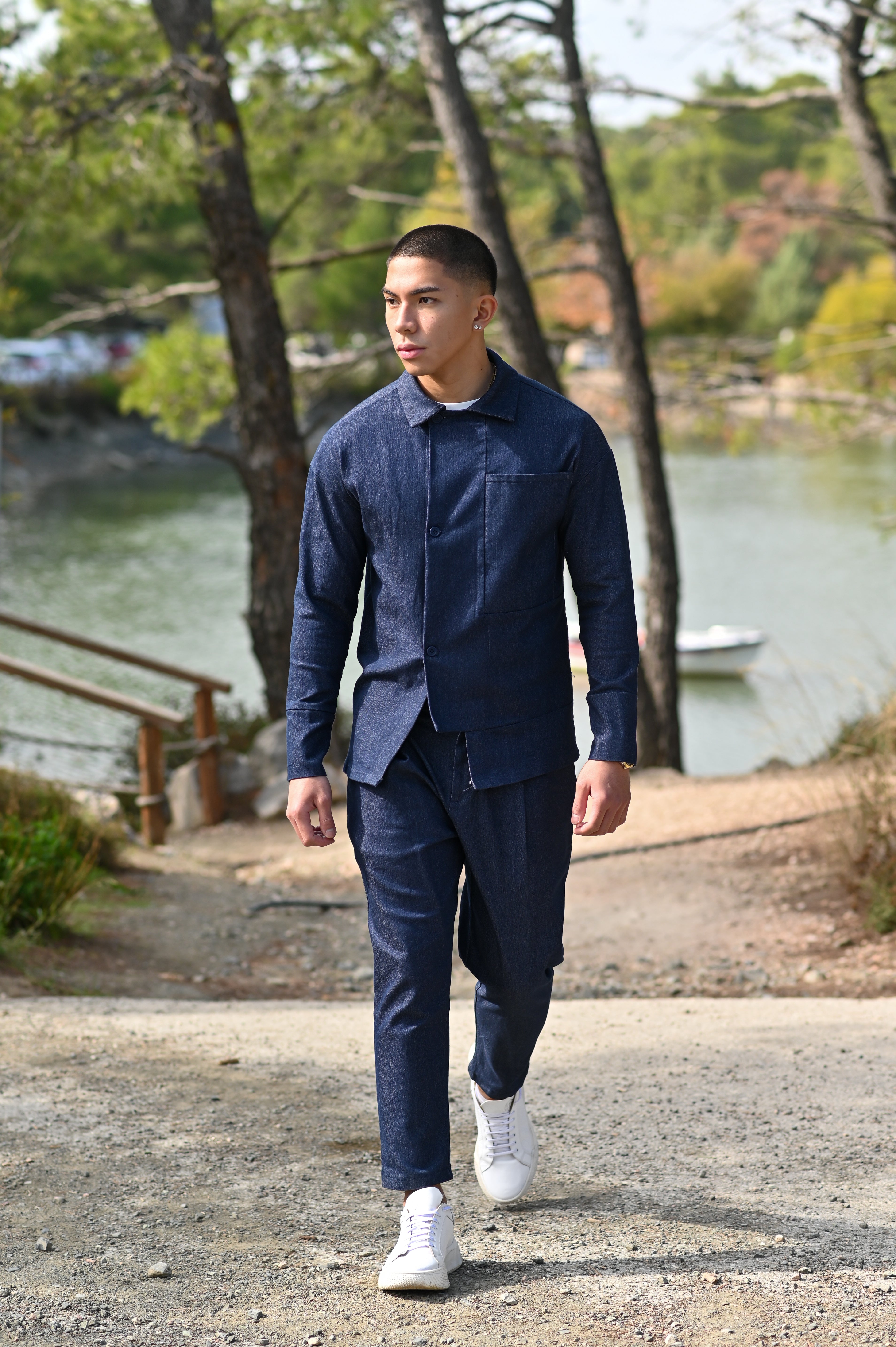 Ανδρικό jean πουκαμισο indeed σε κανονική γραμμή,το μοντέλο της φωτογραφίας είναι 1,86 ύψος και 80 κιλά και φοράει medium size.